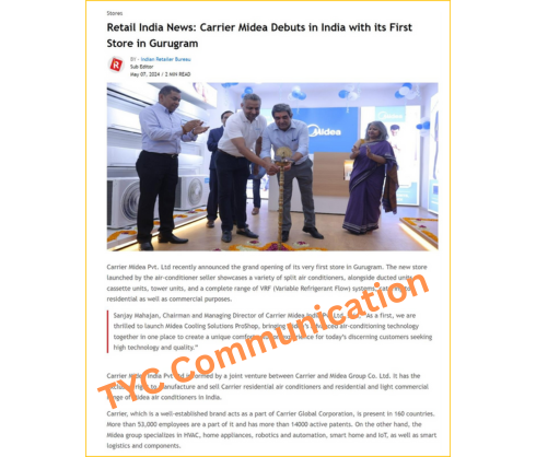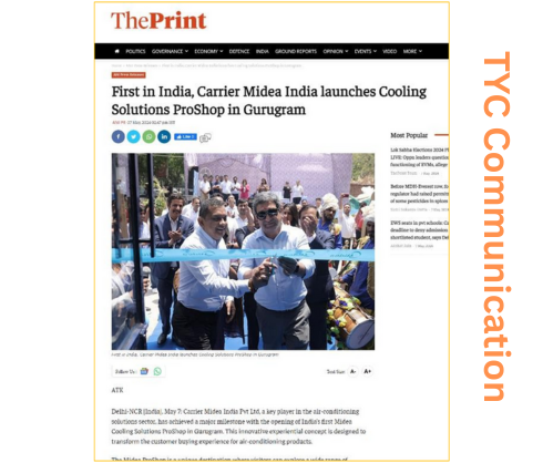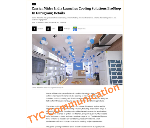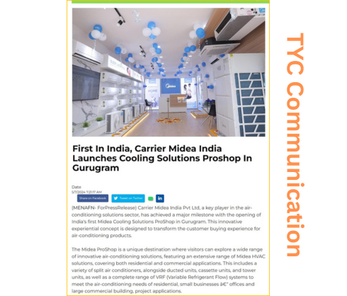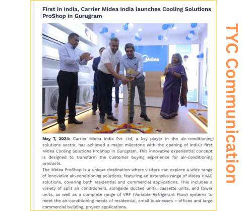 TYC Communication designed a comprehensive PR plan focusing on boosting Carrier Midea India’s visibility across print, digital, and electronic media. The strategy emphasized targeted media interactions, strategic press releases, and on-ground activations like store launches to strengthen the brand narrative. Additionally, events were planned to engage key stakeholders and audiences, aligning with Carrier Midea’s expansion goals in the Indian market.